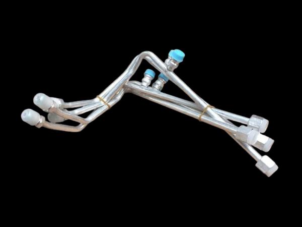 This set includes the three critical pre-formed lines that connect the compressor, condenser, receiver-drier, and evaporator inside the cab: